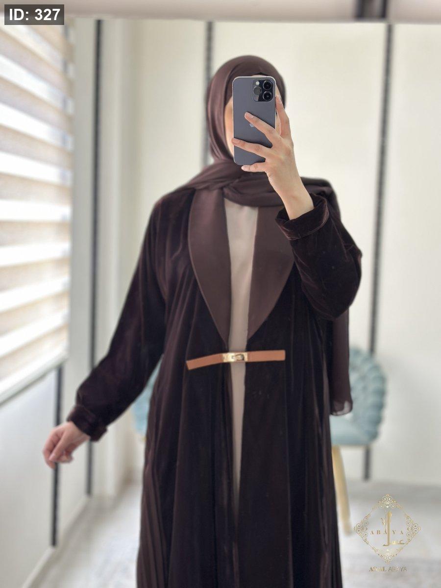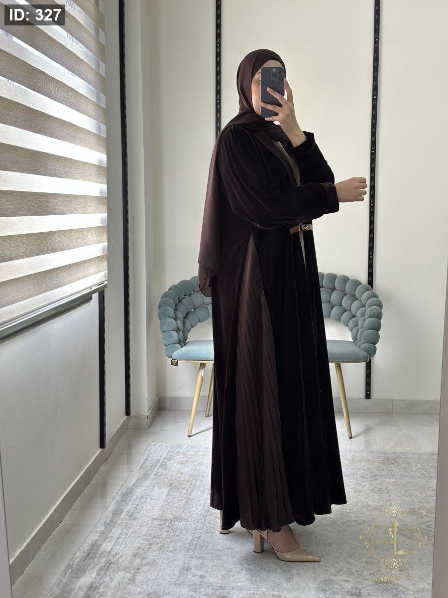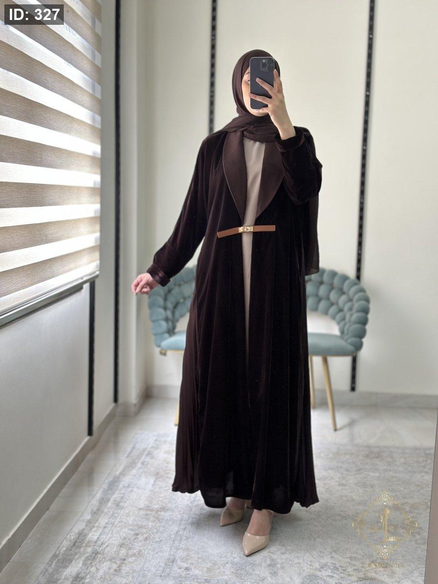 عبايه مخمل بني مع فستان
